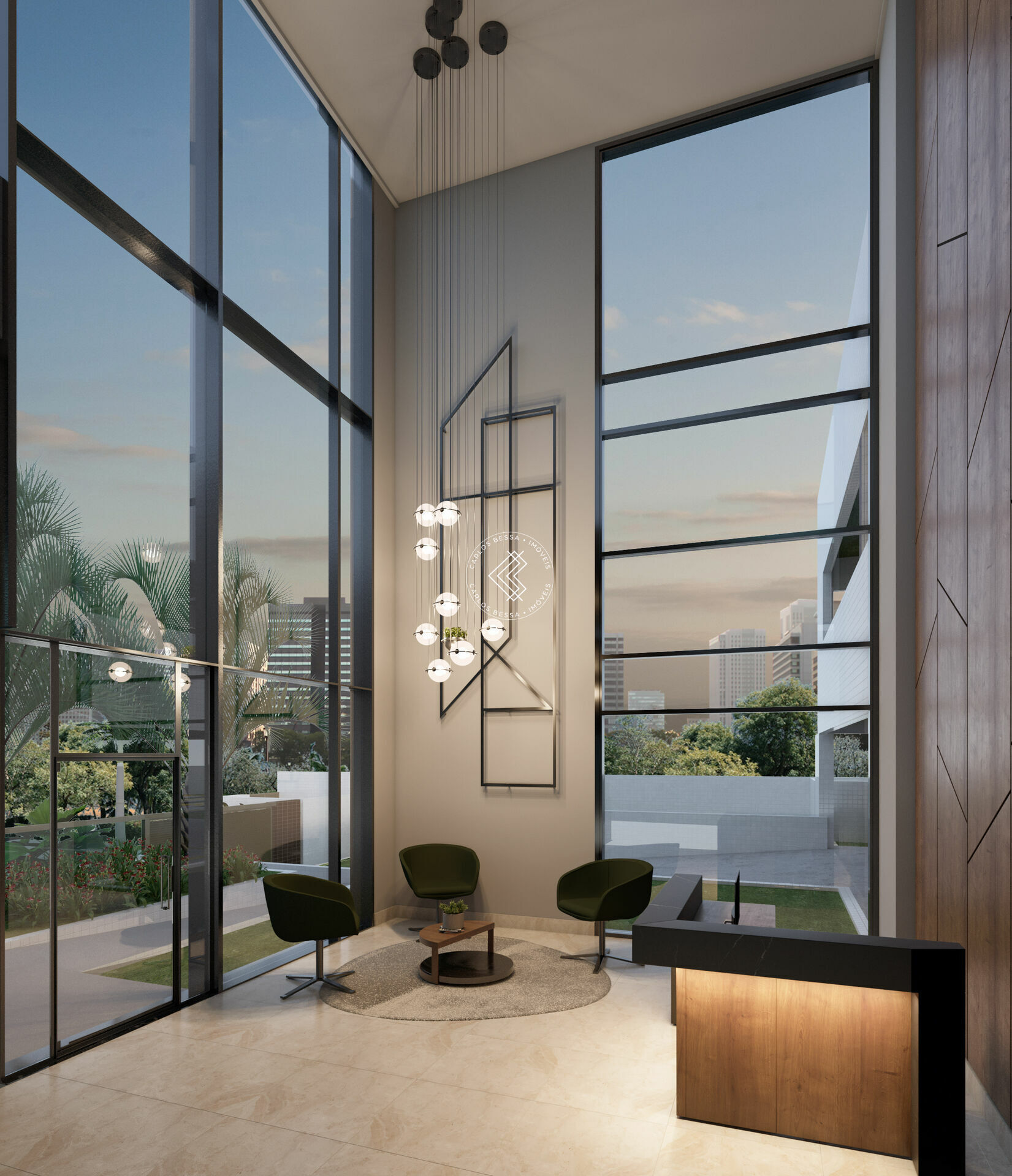 Hall Social com pé direito triplo (Sofisticação, tecnologia e exclusividade);