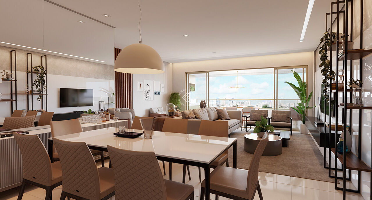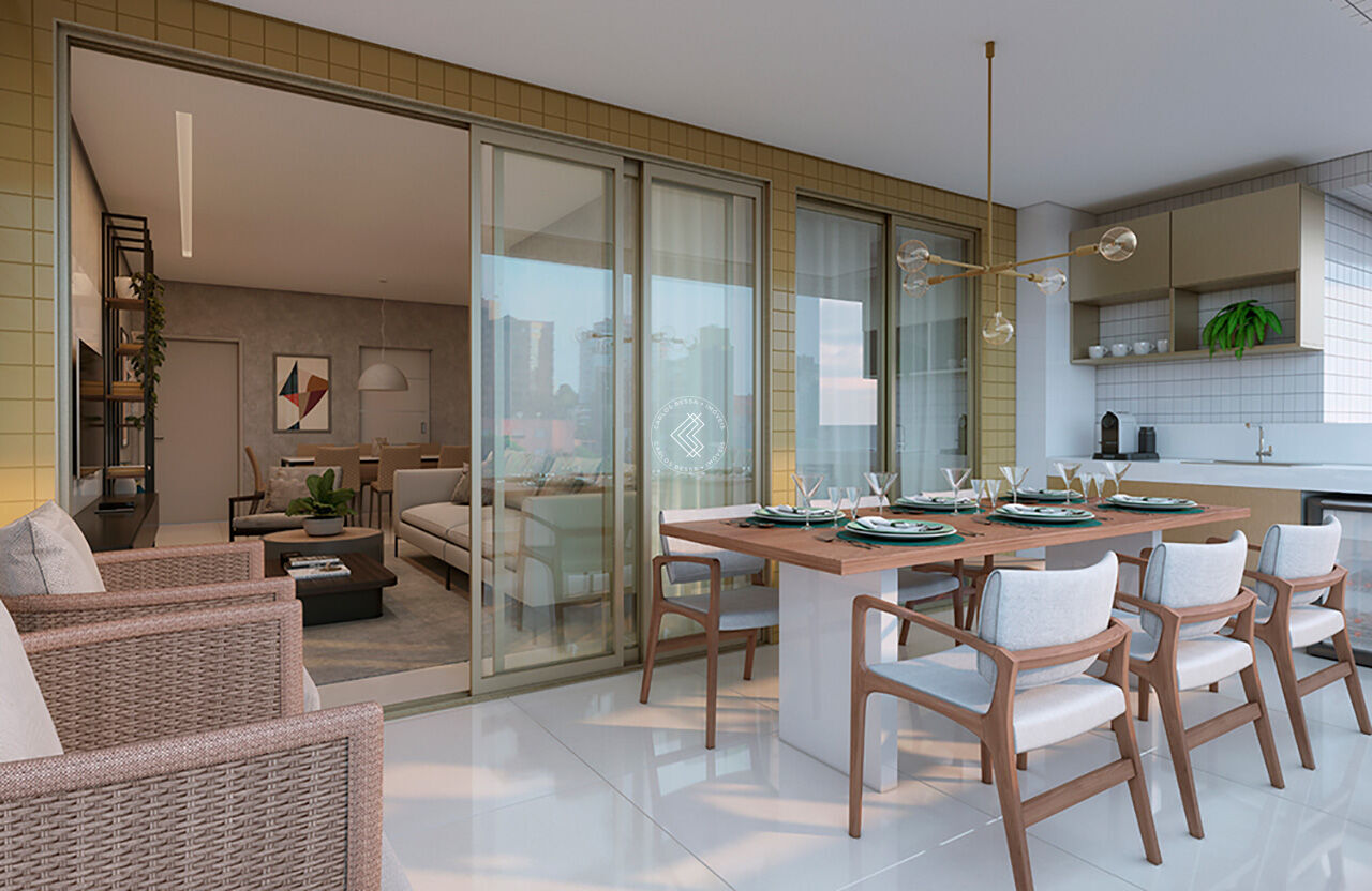 Possui 4 quartos (3 suítes, sendo 1 canadense), varanda gourmet completa (abastecida por água, esgoto, energia e gás), infraestrutura para instalação de ar-condicionado na sala e quartos.